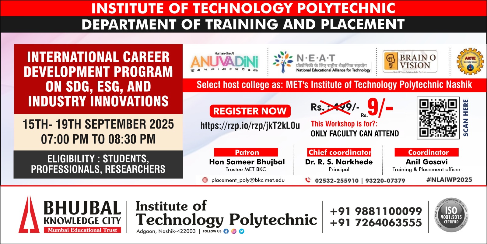 MET's IOE receiving Extension of Accreditation Status from NBA for the Academic Years 2020-21 to 2022-23 to Computer Engineering Program.